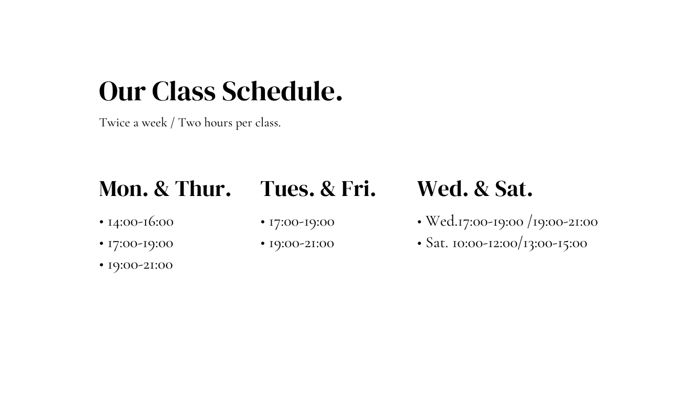 我們採用系統化、結構化的授課模式,讓孩子可以快速融入課程之中,並專注在學習教材上。每次上課進行測驗、複習、口語訓練及各式練習,步調是快速的,但只要學生適應了上課的節奏,英文能力也將快速提升。